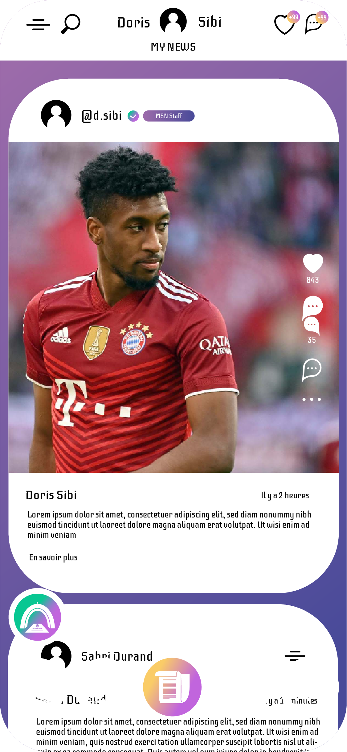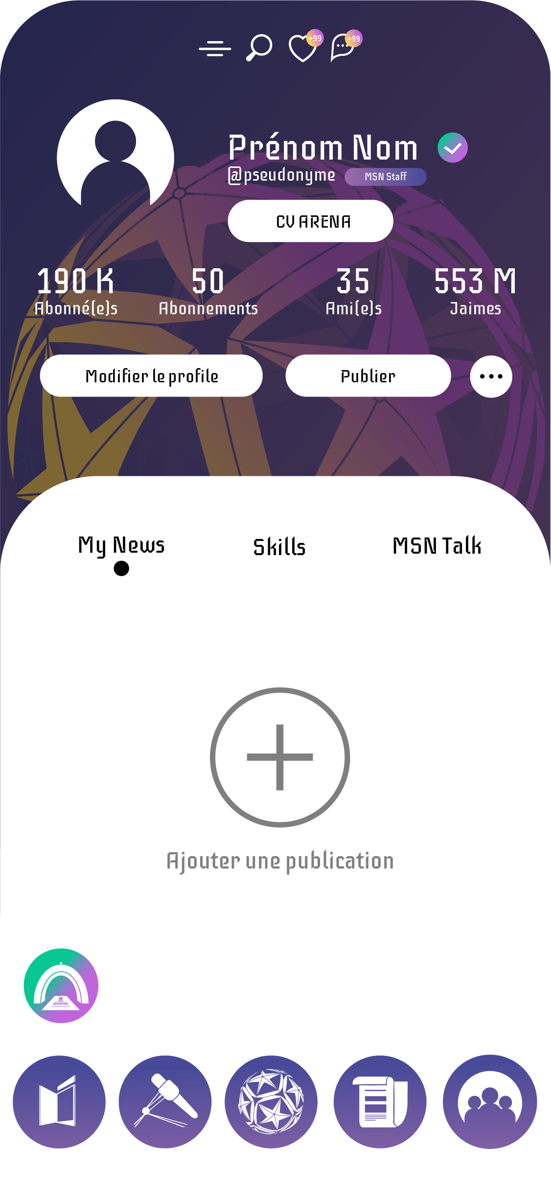 Pour ce faire nous souhaitions créer un véritable écosystème digital en réunissant tous les acteurs de ce sport (joueurs et joueuses, clubs, droit, médecine du sport, etc...) jusqu’aux fans du ballon rond. L’application est dotée de plusieurs fonc tionnalités tel qu’un réseau social afin de publier des photos, vidéos, de l’actualité, la possibilité de publier et rechercher des offres d’emploi, des évènements, de suivre et d’ajouter à son réseau d’autres utilisateurs.
